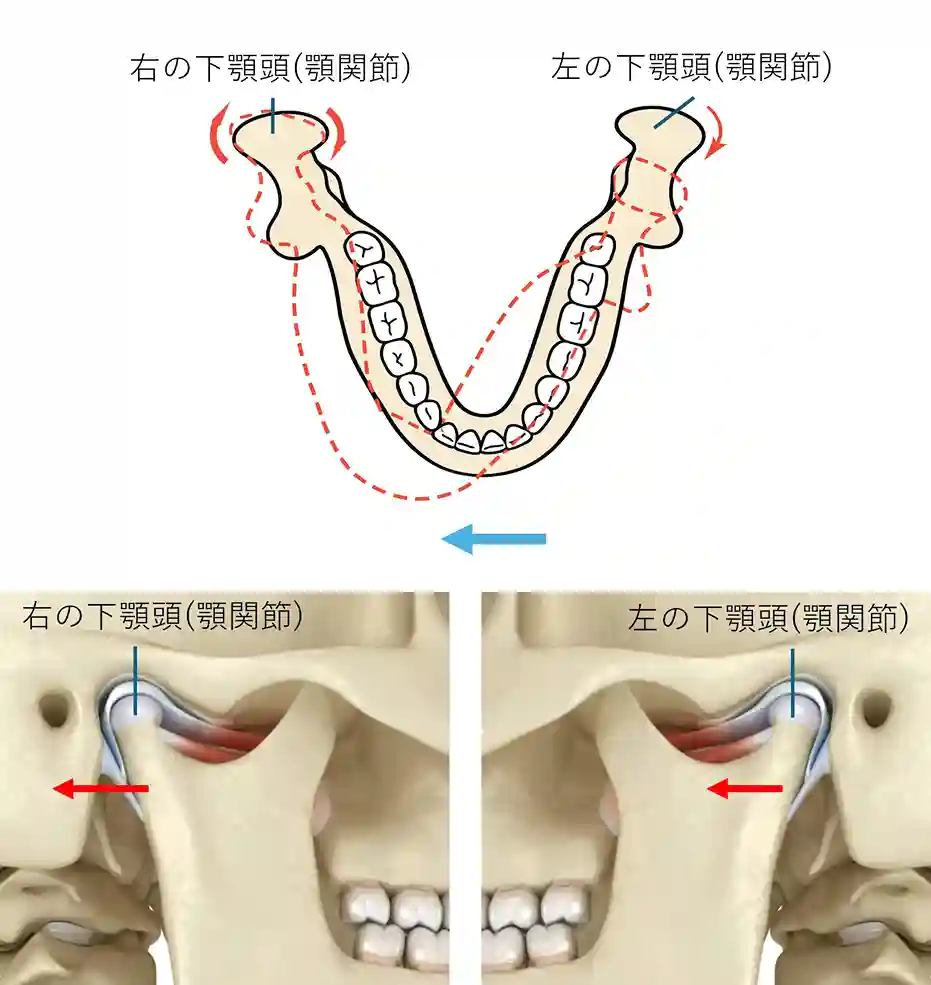 嚙み合わせがずれることによる下顎頭(顎関節)の動き